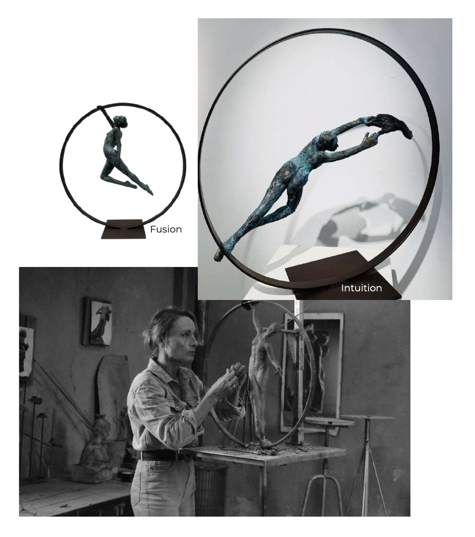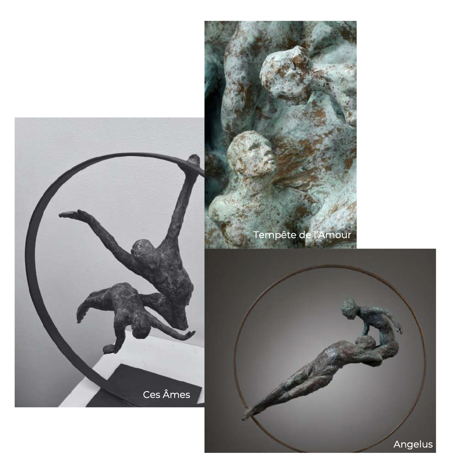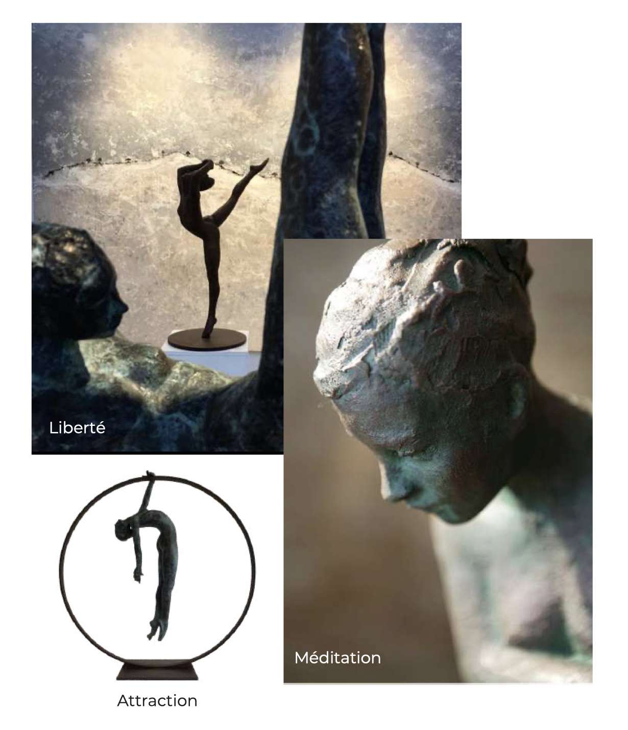 Her sculptures embody the power of an impulse where strength merges with delicacy, through a transcendent movement of both heart and mind. The titles of her works — Impulse, Fusion, Élan, These Souls, and Intuition — invite us to rise together, in a dance of trust and mutual respect.
